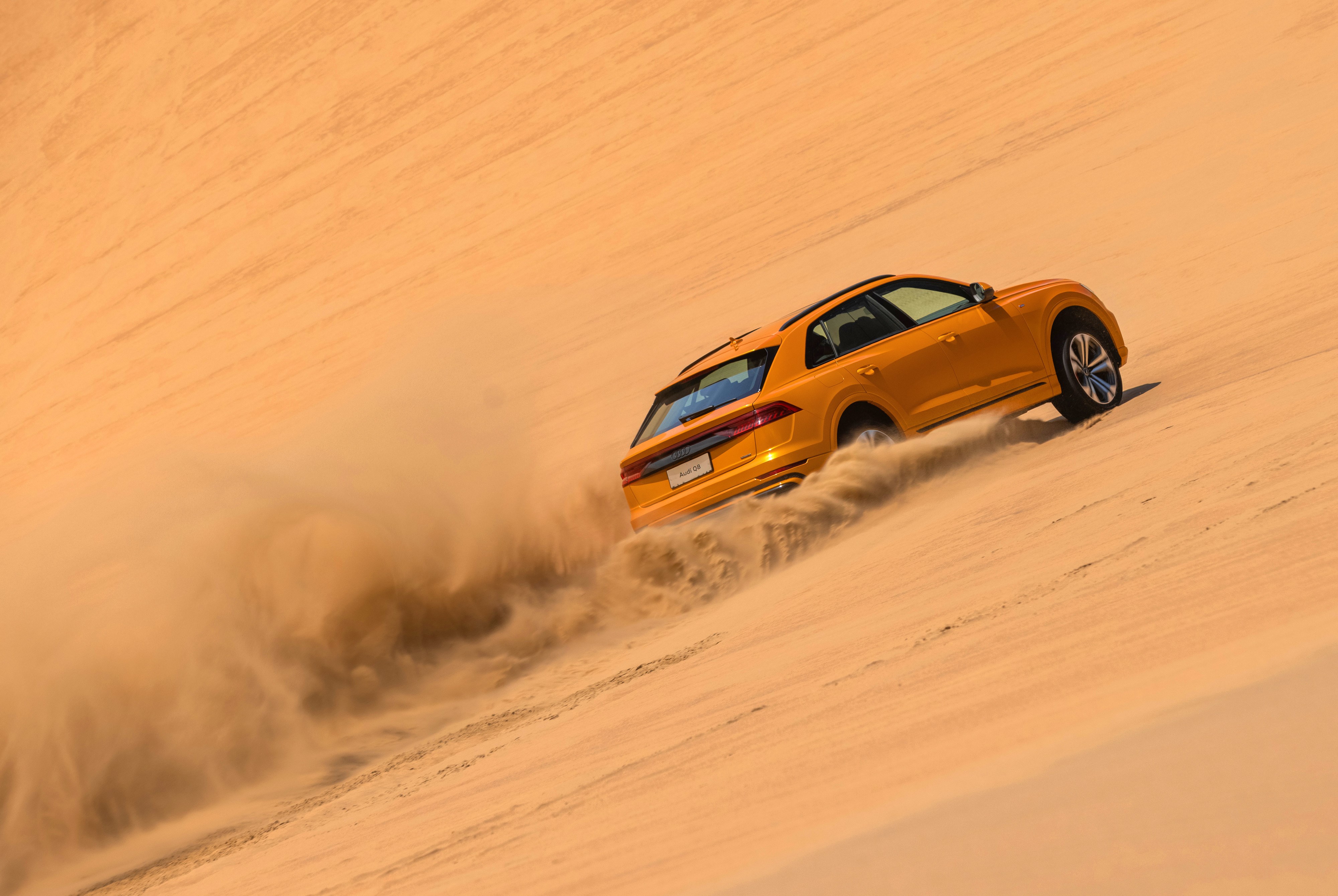 就比如在穿越無盡沙漠之中,2023款奧迪Q8給筆者留下深刻印象。車圈常說“盡管踩油門,剩下交給quattro”,深入沙漠腹地,2023款奧迪Q8標(biāo)配的quattro全時四驅(qū)系統(tǒng)便派上用場了,純機械中央差速器以40:60比例將動力傳送至前后軸,極限條件下可達(dá)到30:70,甚至15:85,另外,由于2023款奧迪Q8采用全鋁車身最大程度降低車重,我們在進入沙漠試駕之前甚至沒有放低胎壓,在這樣的條件下,全程使用越野模式,輕松完成穿越。