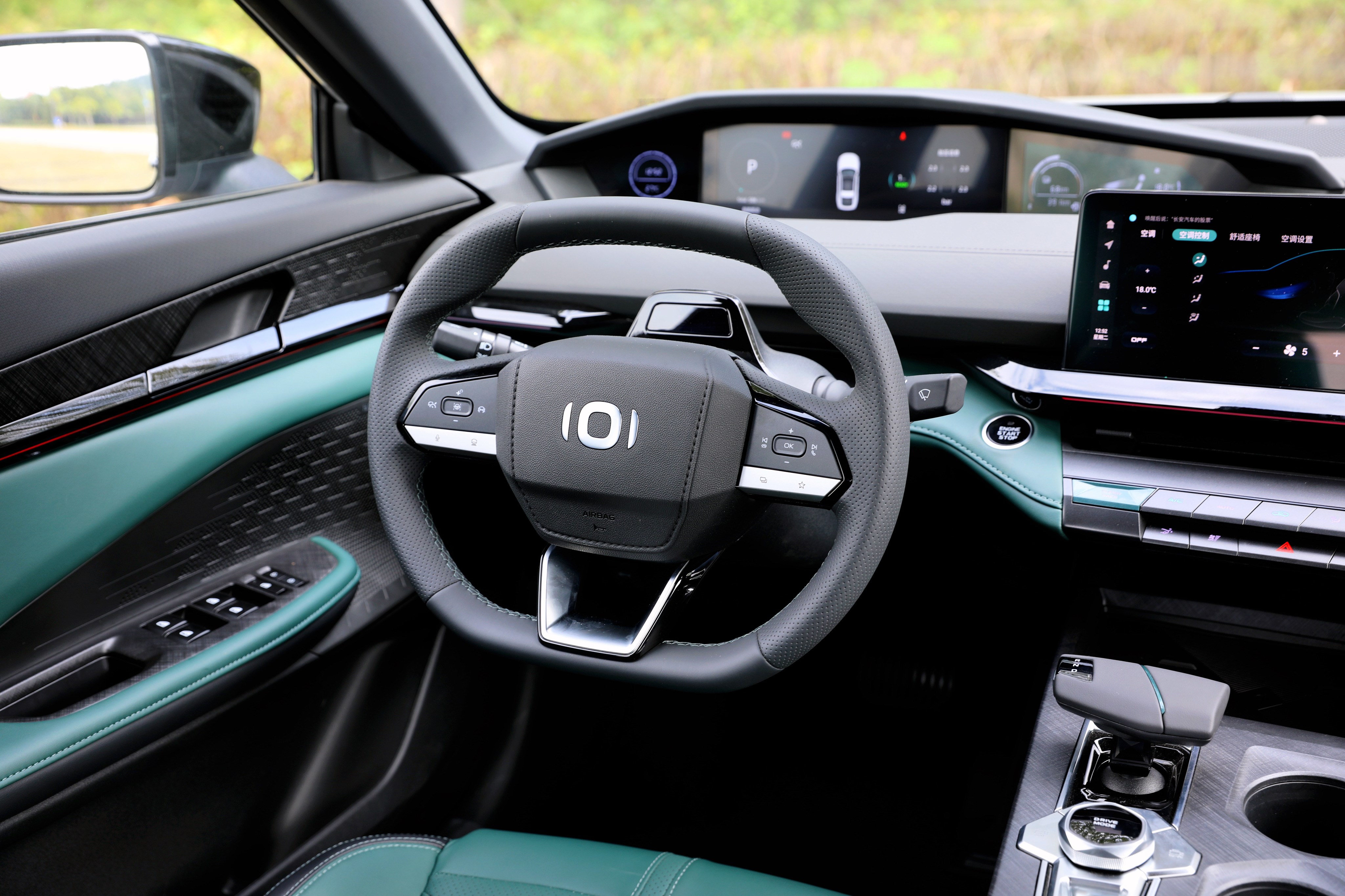 進(jìn)入車內(nèi),長(zhǎng)安啟源A06座艙風(fēng)格很獨(dú)特,富有層次感的造型讓你第一眼會(huì)感覺很復(fù)雜,但是仔細(xì)品味一番后,它特殊的風(fēng)格可以說(shuō)是別有一番風(fēng)味。啟源A06提供流沙白和林蹤綠兩種面料配色,個(gè)人更喜歡林蹤綠的配色方案,更能體現(xiàn)出動(dòng)感、時(shí)尚的一面。