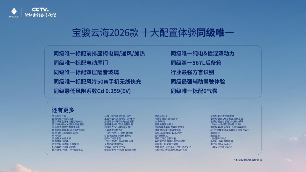 9月13日,“龔赴云海 與JUN同行——寶駿云海私享會”圓滿落幕。此次,寶駿汽車攜手全球品牌代言人龔俊,共同解讀寶駿云海2026款及俊雅版的產(chǎn)品硬實(shí)力。同時(shí),正式公布了分階段推進(jìn)的OTA升級計(jì)劃,10月31日前將為旗下五款車型陸續(xù)推送最新靈語座艙體驗(yàn),并將在今年年底行業(yè)首發(fā)10萬級城市領(lǐng)航輔助功能,讓老車主也能擁有“常用常新”的智能體驗(yàn)。